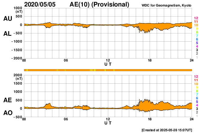 Acknowledgments: We thank AE stations (Abisko [SGU, Sweden], Dixon Island, Cape Chelyuskin, Tixie Bay, Pebek [AARI, Russia], Barrow, College [USGS, USA], Yellowknife, Fort Churchill, Sanikiluaq (Poste-de-la-Baleine) [GSC, Canada], Narsarsuaq [DTU Space, Denmark], and Leirvogur [U. Iceland, Iceland]) as well as the RapidMAG team (NiCT, JHU/APL, UoA, AARI, and IDG) for their cooperations and efforts to operate these stations and to supply data with us for the provisional AE index.