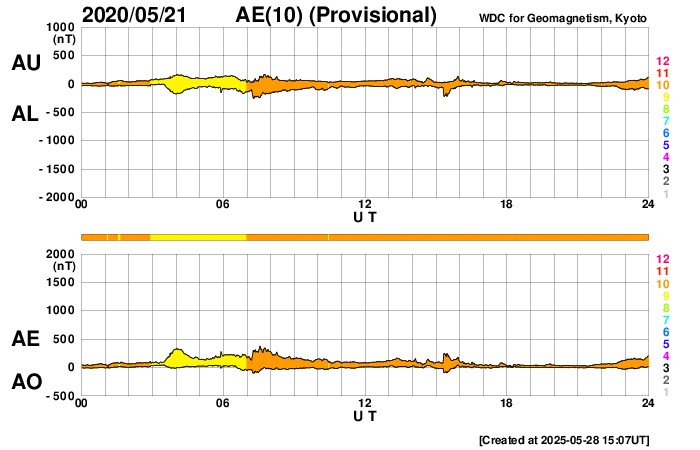 Acknowledgments: We thank AE stations (Abisko [SGU, Sweden], Dixon Island, Cape Chelyuskin, Tixie Bay, Pebek [AARI, Russia], Barrow, College [USGS, USA], Yellowknife, Fort Churchill, Sanikiluaq (Poste-de-la-Baleine) [GSC, Canada], Narsarsuaq [DTU Space, Denmark], and Leirvogur [U. Iceland, Iceland]) as well as the RapidMAG team (NiCT, JHU/APL, UoA, AARI, and IDG) for their cooperations and efforts to operate these stations and to supply data with us for the provisional AE index.