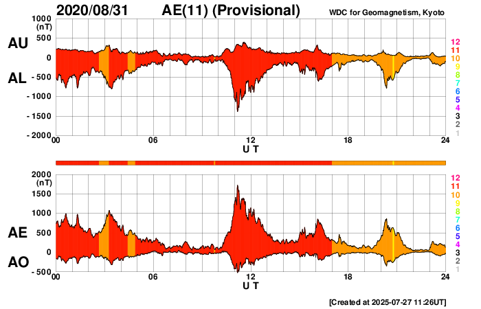 Acknowledgments: We thank AE stations (Abisko [SGU, Sweden], Dixon Island, Cape Chelyuskin, Tixie Bay, Pebek [AARI, Russia], Barrow, College [USGS, USA], Yellowknife, Fort Churchill, Sanikiluaq (Poste-de-la-Baleine) [GSC, Canada], Narsarsuaq [DTU Space, Denmark], and Leirvogur [U. Iceland, Iceland]) as well as the RapidMAG team (NiCT, JHU/APL, UoA, AARI, and IDG) for their cooperations and efforts to operate these stations and to supply data with us for the provisional AE index.